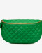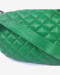 Bumbag i quiltet læder. Tasken er grøn som en forårsdag, rummelig og har kortholder på indersiden. Justerbar skulderrem med diskret "smukfest"-prægning direkte i skindet.